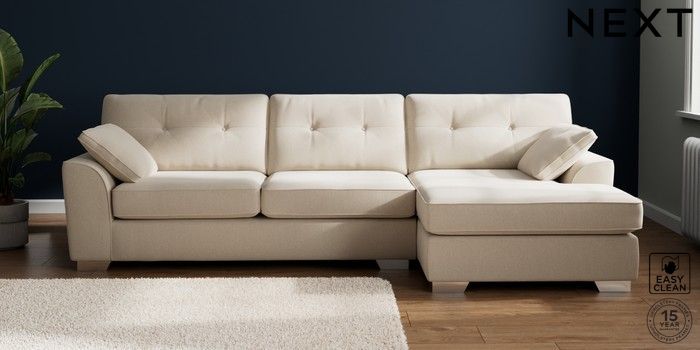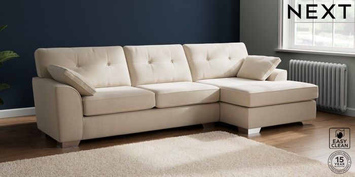 7.3.1 Buy Stamford Buttoned Back Large Sofa Chaise - Right Hand Tweedy Blend Easy Clean Oyster Large Square Angle - Chrome Metal from the Next UK online shop Click here to use our accessible website