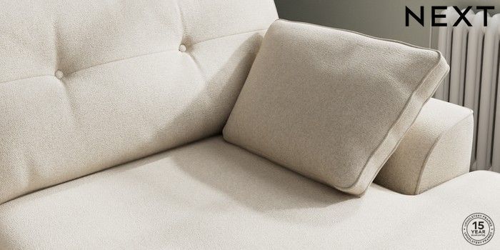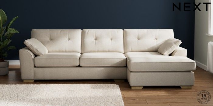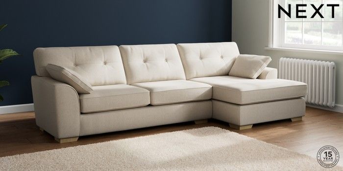 7.2.6 Buy Stamford Buttoned Back Large Sofa Chaise - Right Hand Tweedy Chenille Oyster Large Square Angle - Light from the Next UK online shop Click here to use our accessible website