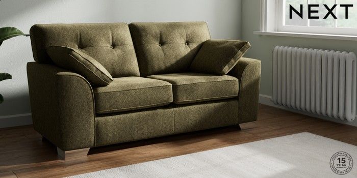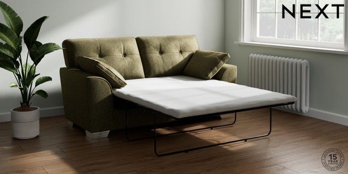 7.2.6 Buy Stamford Buttoned Back Sofa Bed Cotswold Chenille Dark Green Large Square Angle - Chrome Metal from the Next UK online shop Click here to use our accessible website