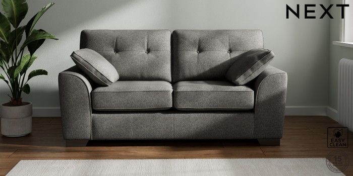 7.2.6 Buy Stamford Buttoned Back Sofa Bed Tweedy Blend Easy Clean Dark Grey Large Square Angle - Gunmetal from the Next UK online shop Click here to use our accessible website