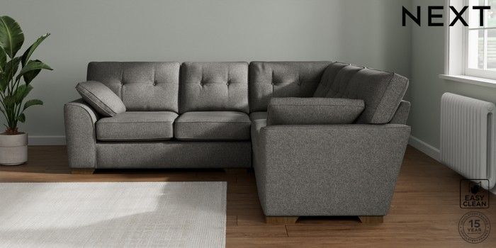 7.2.6 Buy Stamford Buttoned Back Medium Corner Sofa - Universal Tweedy Blend Easy Clean Dark Grey Large Square Angle - Mid from the Next UK online shop Click here to use our accessible website