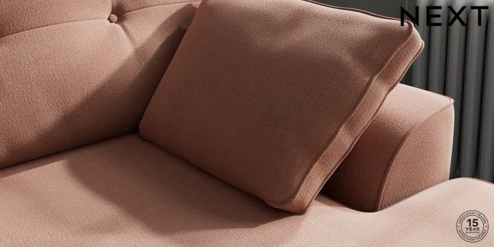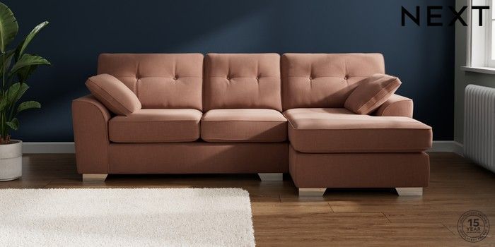 7.2.10 Buy Stamford Buttoned Back Medium Sofa Chaise - Right Hand Relaxed Linen Look Light Rust Brown Large Square Angle - Chrome Metal from the Next UK online shop Click here to use our accessible website