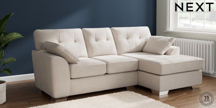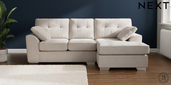 7.2.6 Buy Stamford Buttoned Back Small Sofa Chaise - Right Hand Chunky Chenille Oyster Large Square Angle - Chrome Metal from the Next UK online shop Click here to use our accessible website