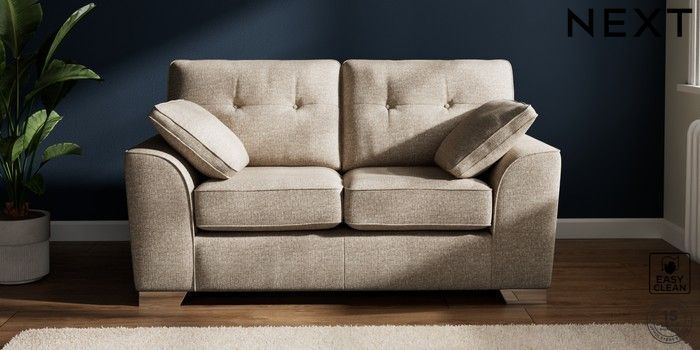 7.2.6 Buy Stamford Buttoned Back 2 Seater Small Sofa Chunky Boucle Easy Clean Mid Natural Large Square Angle - Chrome Metal from the Next UK online shop Click here to use our accessible website