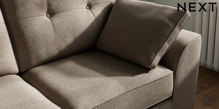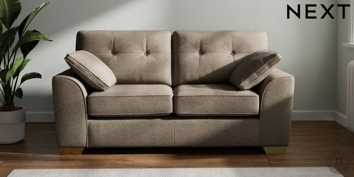 7.2.6 Buy Stamford Buttoned Back 2 Seater Sofa Chunky Weave Dark Natural Large Square Angle - Brushed Brass from the Next UK online shop Click here to use our accessible website
