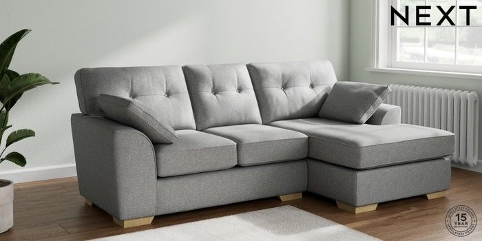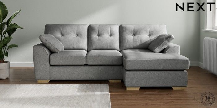 7.2.6 Buy Stamford Buttoned Back Small Sofa Chaise - Right Hand Chunky Weave Mid Grey Large Square Angle - Light from the Next UK online shop Click here to use our accessible website