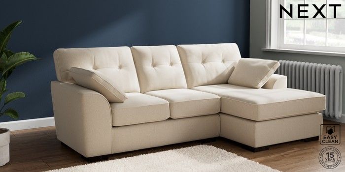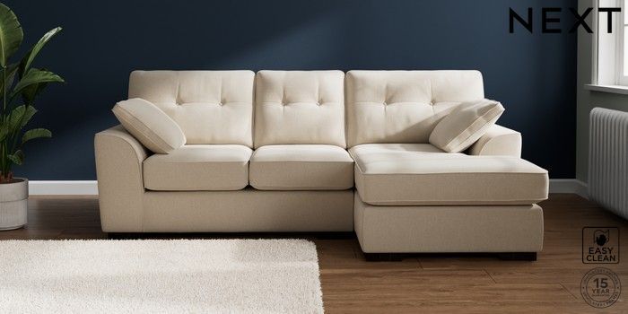 7.2.6 Buy Stamford Buttoned Back Small Sofa Chaise - Right Hand Tweedy Blend Easy Clean Oyster Large Square Angle - Dark from the Next UK online shop Click here to use our accessible website