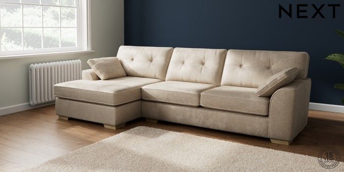 7.2.6 Buy Stamford Buttoned Back Large Sofa Chaise - Left Hand Plush Chenille Light Natural Large Square Angle - Light from the Next UK online shop Click here to use our accessible website