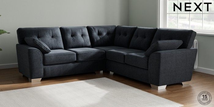 7.2.10 Buy Stamford Buttoned Back Medium Corner Sofa - Universal Boucle Chenille Dark Slate Blue Large Square Angle - Chrome Metal from the Next UK online shop Click here to use our accessible website