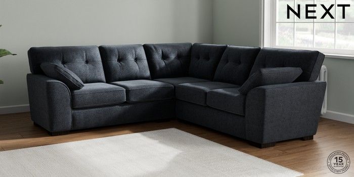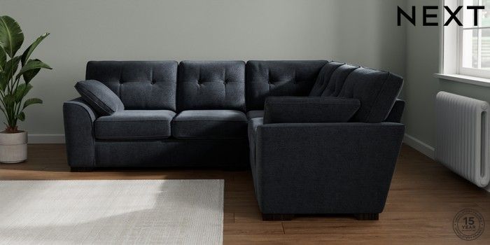 7.2.10 Buy Stamford Buttoned Back Medium Corner Sofa - Universal Boucle Chenille Dark Slate Blue Large Square Angle - Dark from the Next UK online shop Click here to use our accessible website