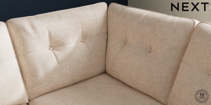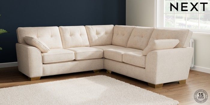 7.2.10 Buy Stamford Buttoned Back Medium Corner Sofa - Universal Boucle Chenille Oyster Large Square Angle - Brushed Brass from the Next UK online shop Click here to use our accessible website