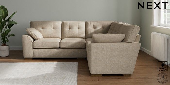 7.2.10 Buy Stamford Buttoned Back Medium Corner Sofa - Universal Boucle Weave Easy Clean Dark Natural Large Square Angle - Mid from the Next UK online shop Click here to use our accessible website