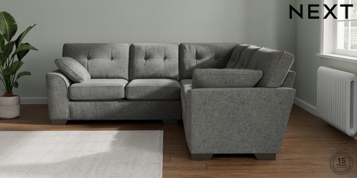 7.2.10 Buy Stamford Buttoned Back Medium Corner Sofa - Universal Chunky Chenille Dark Grey Large Square Angle - Gunmetal from the Next UK online shop Click here to use our accessible website