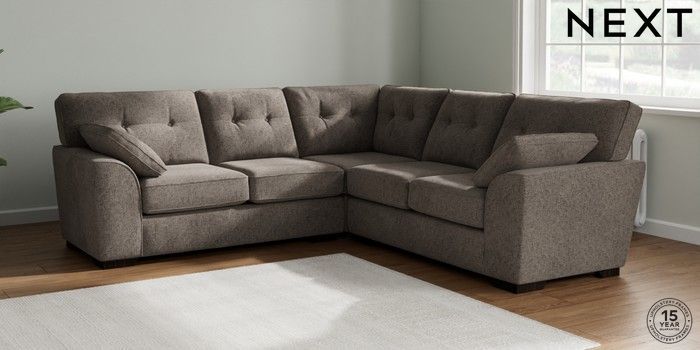7.2.10 Buy Stamford Buttoned Back Medium Corner Sofa - Universal Chunky Chenille Mink Brown Large Square Angle - Dark from the Next UK online shop Click here to use our accessible website