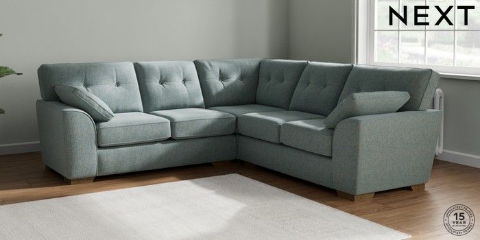 7.2.6 Buy Stamford Buttoned Back Medium Corner Sofa - Universal Chunky Marl Mid Blue Large Square Angle - Mid from the Next UK online shop Click here to use our accessible website