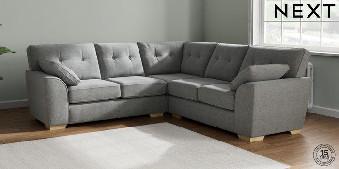 7.2.6 Buy Stamford Buttoned Back Medium Corner Sofa - Universal Chunky Marl Mid Grey Large Square Angle - Light from the Next UK online shop Click here to use our accessible website