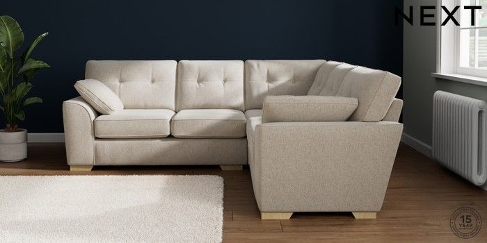 7.2.10 Buy Stamford Buttoned Back Medium Corner Sofa - Universal Chunky Marl Oyster Large Square Angle - Light from the Next UK online shop Click here to use our accessible website