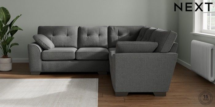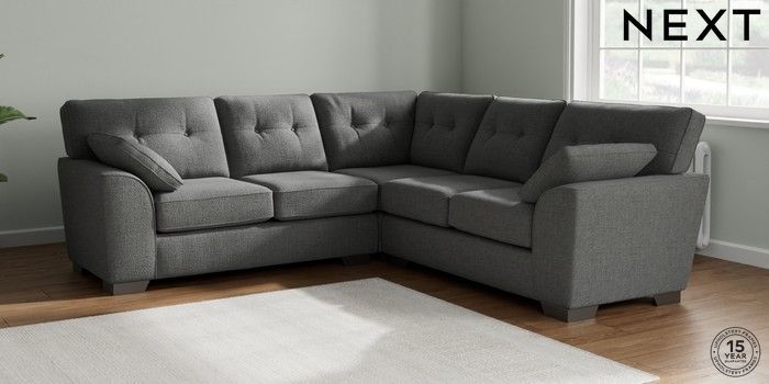 7.2.10 Buy Stamford Buttoned Back Medium Corner Sofa - Universal Chunky Texture Dark Grey Large Square Angle - Gunmetal from the Next UK online shop Click here to use our accessible website