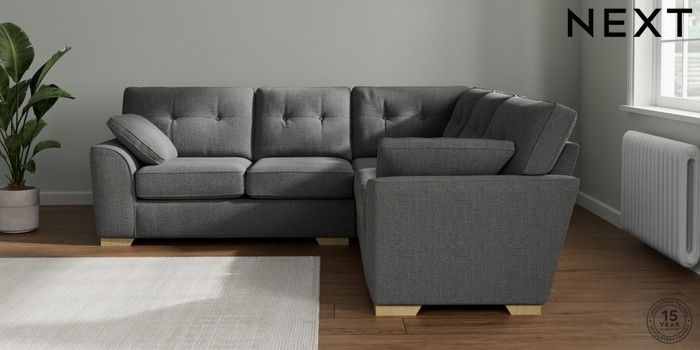 7.2.10 Buy Stamford Buttoned Back Medium Corner Sofa - Universal Chunky Texture Dark Grey Large Square Angle - Light from the Next UK online shop Click here to use our accessible website