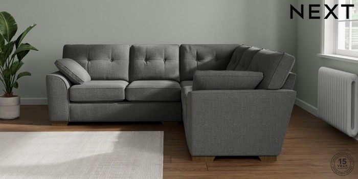7.2.10 Buy Stamford Buttoned Back Medium Corner Sofa - Universal Chunky Texture Dark Grey Large Square Angle - Mid from the Next UK online shop Click here to use our accessible website