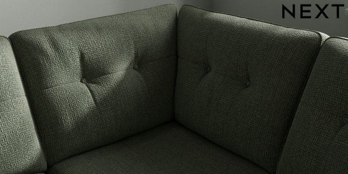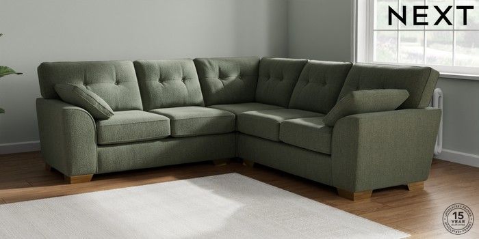 7.2.10 Buy Stamford Buttoned Back Medium Corner Sofa - Universal Chunky Texture Mid Forest Green Large Square Angle - Brushed Brass from the Next UK online shop Click here to use our accessible website