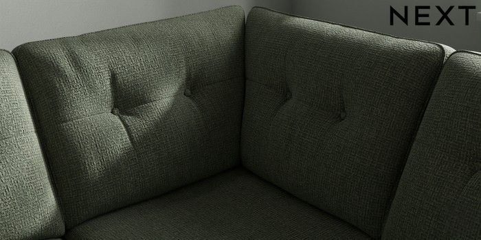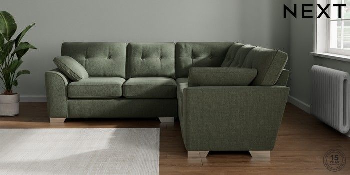 7.2.10 Buy Stamford Buttoned Back Medium Corner Sofa - Universal Chunky Texture Mid Forest Green Large Square Angle - Chrome Metal from the Next UK online shop Click here to use our accessible website