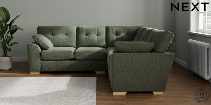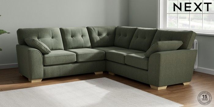 7.2.10 Buy Stamford Buttoned Back Medium Corner Sofa - Universal Chunky Texture Mid Forest Green Large Square Angle - Light from the Next UK online shop Click here to use our accessible website