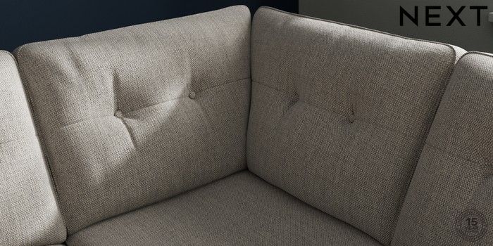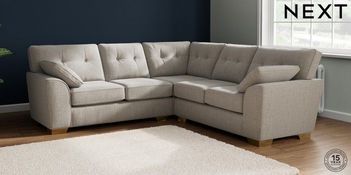 7.2.10 Buy Stamford Buttoned Back Medium Corner Sofa - Universal Chunky Weave Dove Grey Large Square Angle - Brushed Brass from the Next UK online shop Click here to use our accessible website