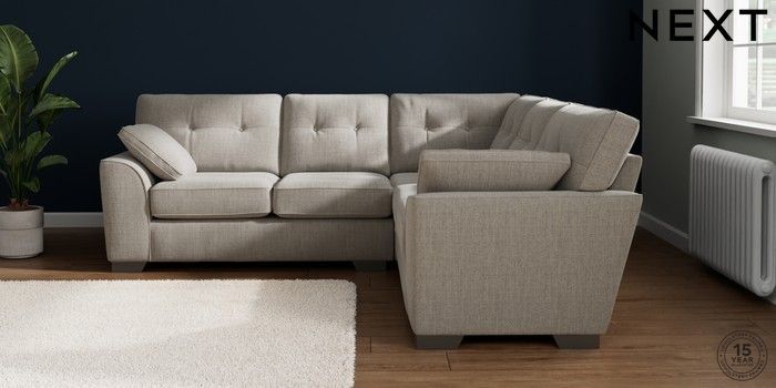 7.2.10 Buy Stamford Buttoned Back Medium Corner Sofa - Universal Chunky Weave Dove Grey Large Square Angle - Gunmetal from the Next UK online shop Click here to use our accessible website