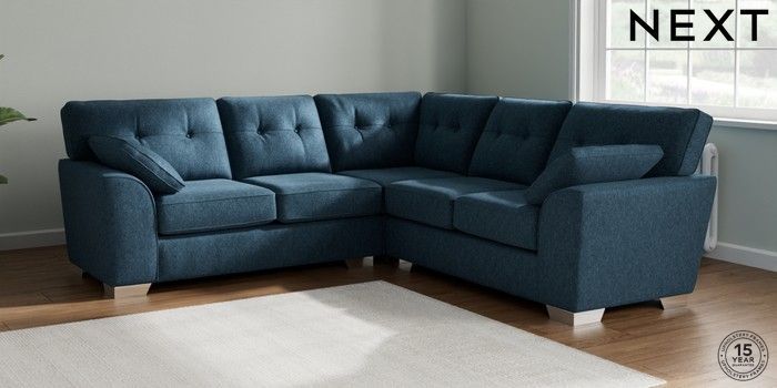 7.2.10 Buy Stamford Buttoned Back Medium Corner Sofa - Universal Cotswold Chenille Dark Blue Large Square Angle - Chrome Metal from the Next UK online shop Click here to use our accessible website