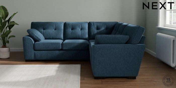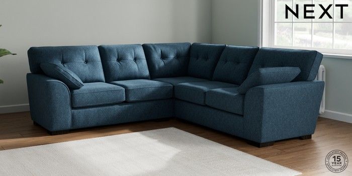 7.2.10 Buy Stamford Buttoned Back Medium Corner Sofa - Universal Cotswold Chenille Dark Blue Large Square Angle - Dark from the Next UK online shop Click here to use our accessible website
