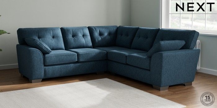 7.2.10 Buy Stamford Buttoned Back Medium Corner Sofa - Universal Cotswold Chenille Dark Blue Large Square Angle - Gunmetal from the Next UK online shop Click here to use our accessible website