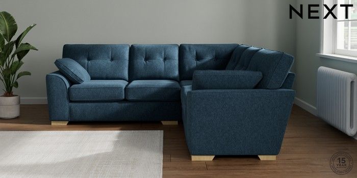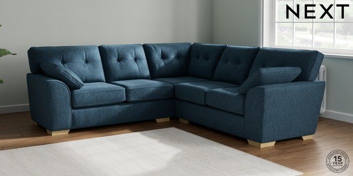 7.2.10 Buy Stamford Buttoned Back Medium Corner Sofa - Universal Cotswold Chenille Dark Blue Large Square Angle - Light from the Next UK online shop Click here to use our accessible website