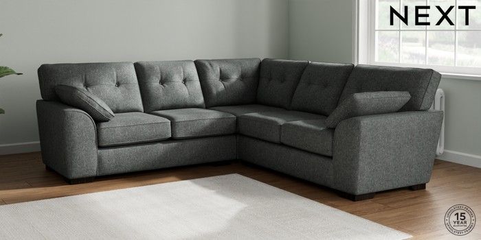 7.2.6 Buy Stamford Buttoned Back Medium Corner Sofa - Universal Cotswold Chenille Dark Grey Large Square Angle - Dark from the Next UK online shop Click here to use our accessible website