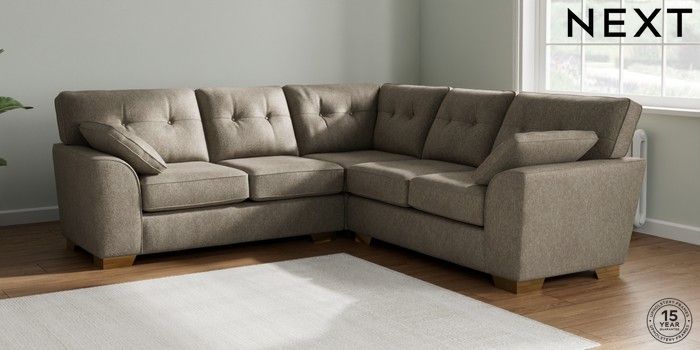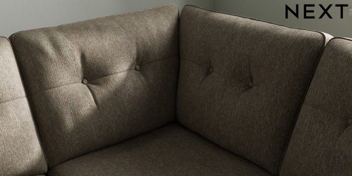 7.2.6 Buy Stamford Buttoned Back Medium Corner Sofa - Universal Cotswold Chenille Mid Mink Brown Large Square Angle - Brushed Brass from the Next UK online shop Click here to use our accessible website