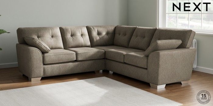 6.12.1 Buy Stamford Buttoned Back Medium Corner Sofa - Universal Cotswold Chenille Mid Mink Brown Large Square Angle - Chrome Metal from the Next UK online shop Click here to use our accessible website