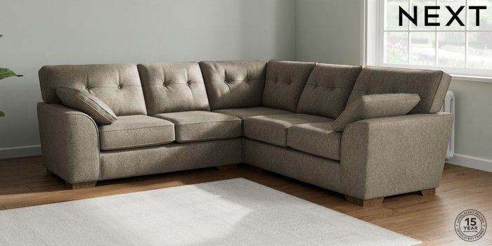 7.2.6 Buy Stamford Buttoned Back Medium Corner Sofa - Universal Cotswold Chenille Mid Mink Brown Large Square Angle - Mid from the Next UK online shop Click here to use our accessible website