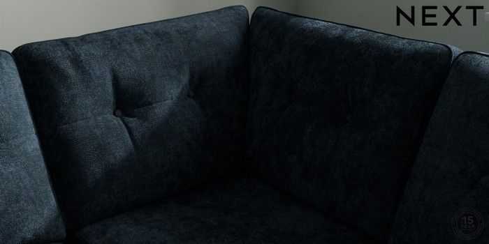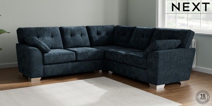 7.2.10 Buy Stamford Buttoned Back Medium Corner Sofa - Universal Distressed Velour Midnight Blue Large Square Angle - Chrome Metal from the Next UK online shop Click here to use our accessible website