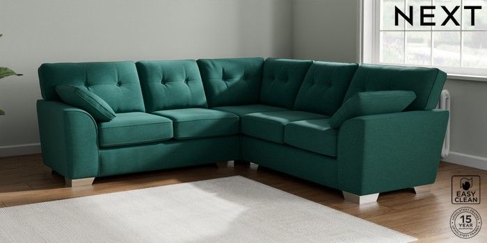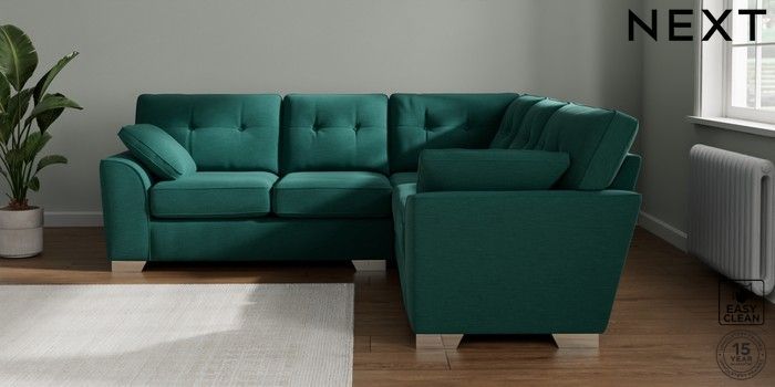 7.2.10 Buy Stamford Buttoned Back Medium Corner Sofa - Universal Fine Chenille Easy Clean Dark Juniper Green Large Square Angle - Chrome Metal from the Next UK online shop Click here to use our accessible website