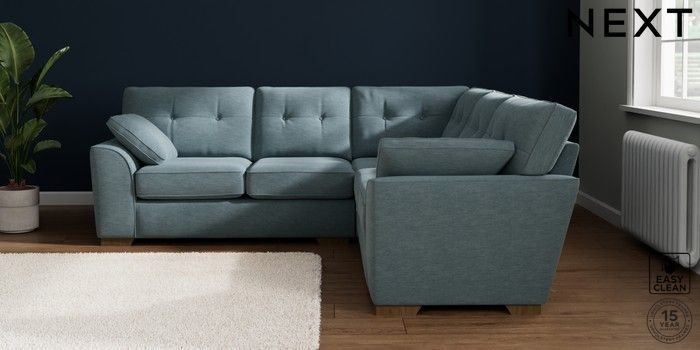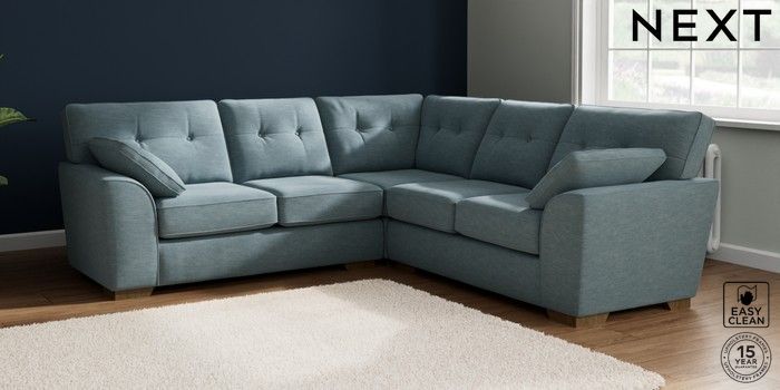 7.2.10 Buy Stamford Buttoned Back Medium Corner Sofa - Universal Fine Chenille Easy Clean Mid Blue Large Square Angle - Mid from the Next UK online shop Click here to use our accessible website