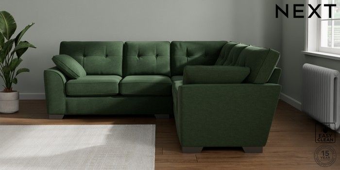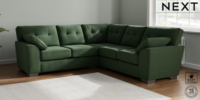 7.2.10 Buy Stamford Buttoned Back Medium Corner Sofa - Universal Fine Chenille Easy Clean Mid Khaki Green Large Square Angle - Gunmetal from the Next UK online shop Click here to use our accessible website