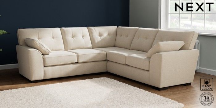 7.2.6 Buy Stamford Buttoned Back Medium Corner Sofa - Universal Fine Chenille Easy Clean Oyster Large Square Angle - Dark from the Next UK online shop Click here to use our accessible website