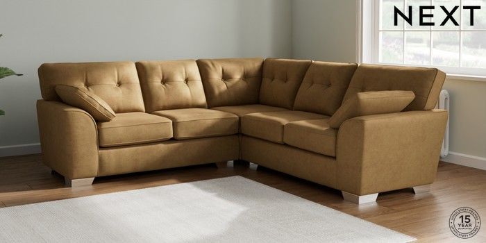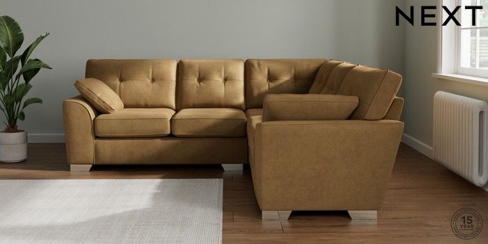 7.2.6 Buy Stamford Buttoned Back Medium Corner Sofa - Universal Luxe Chenille Honey Yellow Large Square Angle - Chrome Metal from the Next UK online shop Click here to use our accessible website