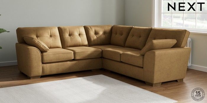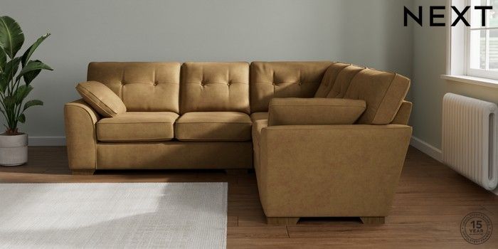 7.2.6 Buy Stamford Buttoned Back Medium Corner Sofa - Universal Luxe Chenille Honey Yellow Large Square Angle - Mid from the Next UK online shop Click here to use our accessible website