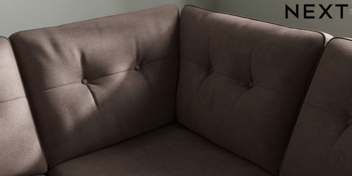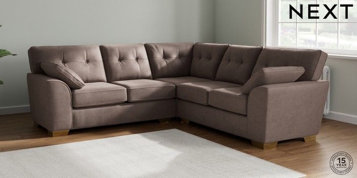 7.2.10 Buy Stamford Buttoned Back Medium Corner Sofa - Universal Luxe Chenille Mink Brown Large Square Angle - Brushed Brass from the Next UK online shop Click here to use our accessible website