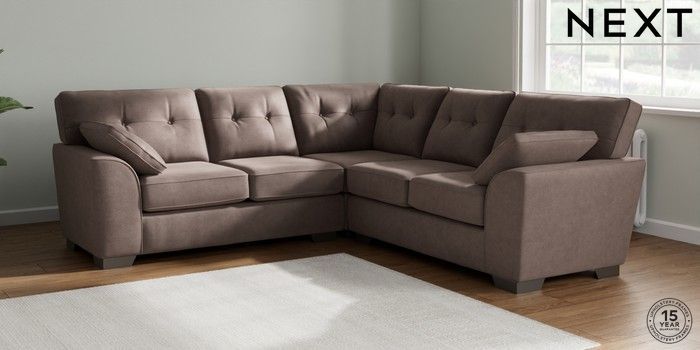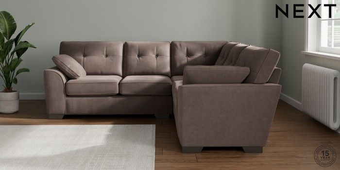7.2.10 Buy Stamford Buttoned Back Medium Corner Sofa - Universal Luxe Chenille Mink Brown Large Square Angle - Gunmetal from the Next UK online shop Click here to use our accessible website