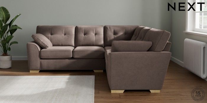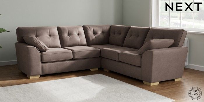 7.2.10 Buy Stamford Buttoned Back Medium Corner Sofa - Universal Luxe Chenille Mink Brown Large Square Angle - Light from the Next UK online shop Click here to use our accessible website