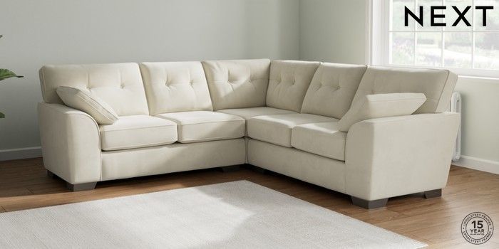 7.0.3 Buy Stamford Buttoned Back Medium Corner Sofa - Universal Luxe Chenille Oyster Large Square Angle - Gunmetal from the Next UK online shop Click here to use our accessible website