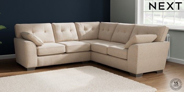 7.2.6 Buy Stamford Buttoned Back Medium Corner Sofa - Universal Multi Weave Mid Natural Large Square Angle - Gunmetal from the Next UK online shop Click here to use our accessible website
