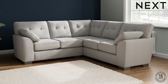 6.12.1 Buy Stamford Buttoned Back Medium Corner Sofa - Universal Natural Mix Light Grey Large Square Angle - Gunmetal from the Next UK online shop Click here to use our accessible website